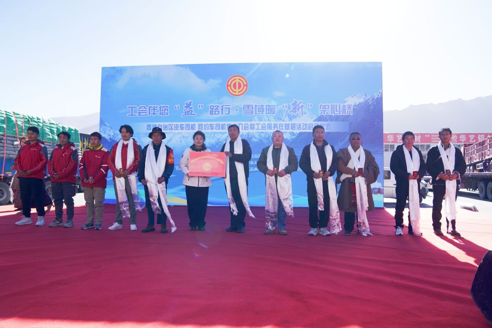 12月5日,西藏自治區(qū)貨車(chē)司機(jī)、網(wǎng)約車(chē)司機(jī)集中入會(huì)暨工會(huì)服務(wù)在基層活動(dòng)啟動(dòng)儀式在拉薩城投物流園舉行。新華社發(fā)