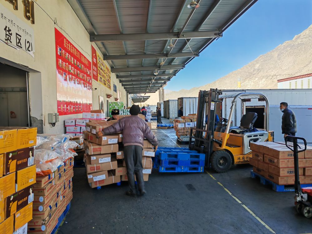 記者了解到,物流港每天配送到西藏各地的物資超過(guò)400噸?!扒嗖鼐€是西藏的生命線,我們最遠(yuǎn)的貨源是在5000多公里外的黑龍江齊齊哈爾?!睏铒@慶說(shuō)。