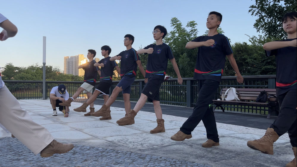 “訓(xùn)練之外,大家是很好的朋友,私下也會(huì)組個(gè)團(tuán)進(jìn)劇場(chǎng)看演出、到珠??春秸埂!备哐湃嵴f(shuō),也正是因?yàn)檫@種融洽的氛圍,所以口令聲響,大家就會(huì)立刻聚集起來(lái),組成那支團(tuán)結(jié)一心、整齊劃一的隊(duì)伍。