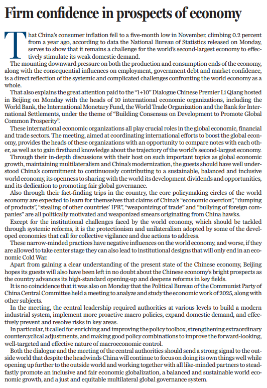 “1+10”對(duì)話的同一天,中共中央政治局12月9日召開會(huì)議,分析研究2025年經(jīng)濟(jì)工作及其他議題。