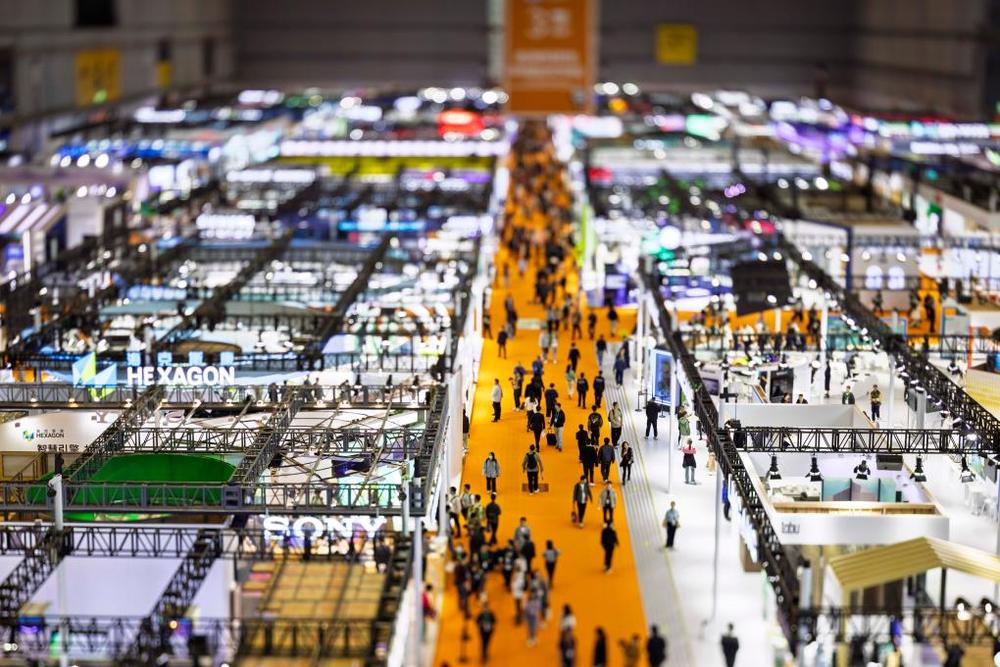 11月5日至10日,第七屆中國國際進口博覽會在國家會展中心(上海)舉行。11月9日拍攝的第七屆進博會技術(shù)裝備展區(qū)。(新華社記者 王翔 攝)