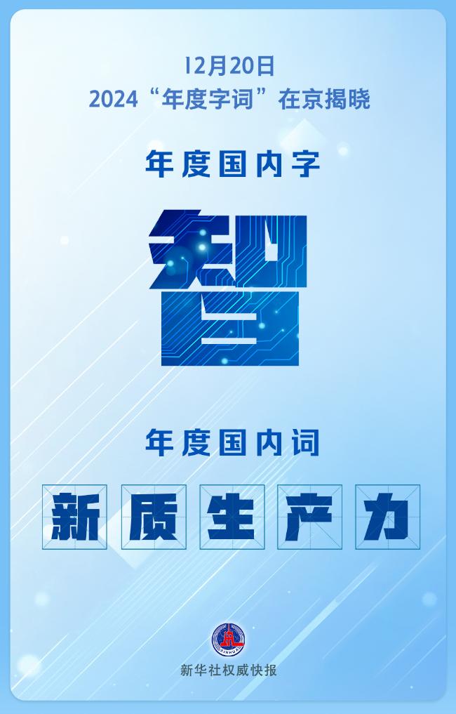 12月20日,“漢語盤點2024”活動在京揭曉“年度字詞”——“智”“新質(zhì)生產(chǎn)力”“變”“人工智能”分別當選2024年度國內(nèi)字、國內(nèi)詞、國際字、國際詞。
