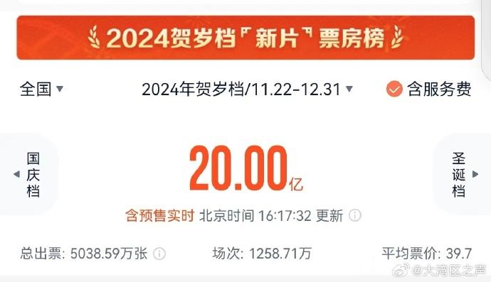 據(jù)網(wǎng)絡(luò)平臺(tái)數(shù)據(jù),截至12月22日16時(shí)17分,2024年賀歲檔(11月22日—12月31日)檔期電影票房(含預(yù)售)突破20億。