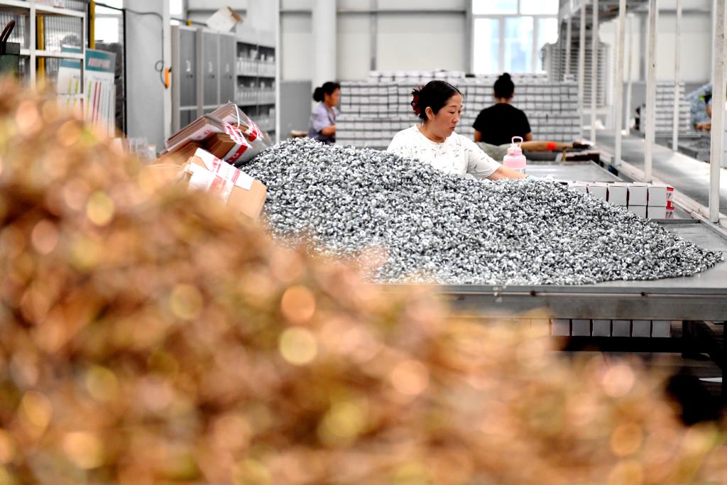 2024年8月16日,在邯鄲市永年區(qū)一家緊固件生產企業(yè),工人在包裝車間內工作。新華社記者 王曉 攝