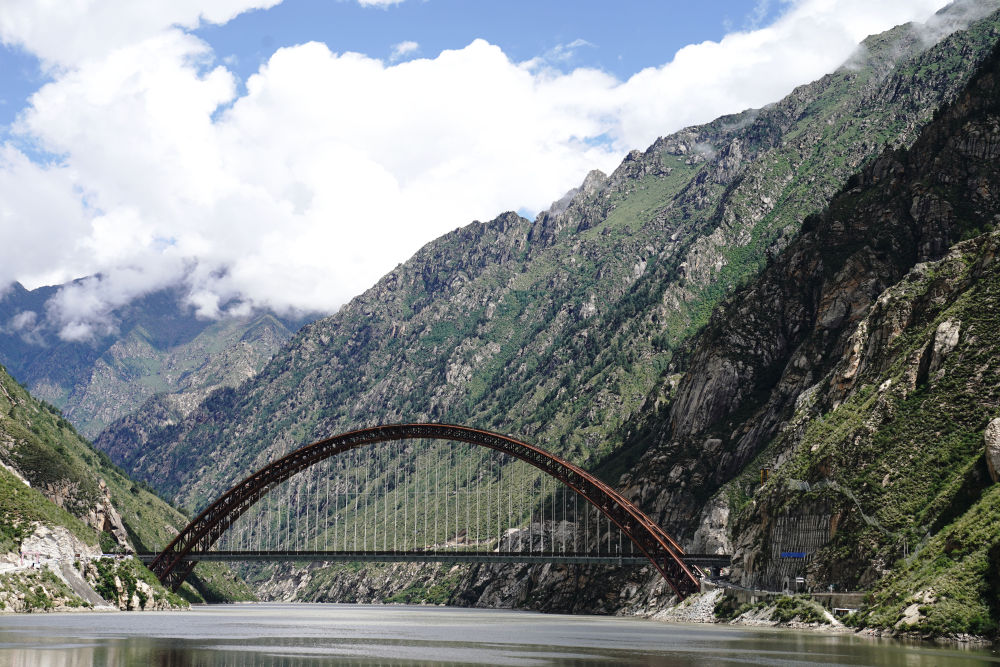 藏木雅魯藏布江雙線特大橋全長525.1米,主拱跨徑430米(2021年7月11日攝)。 新華社記者 劉洪明 攝