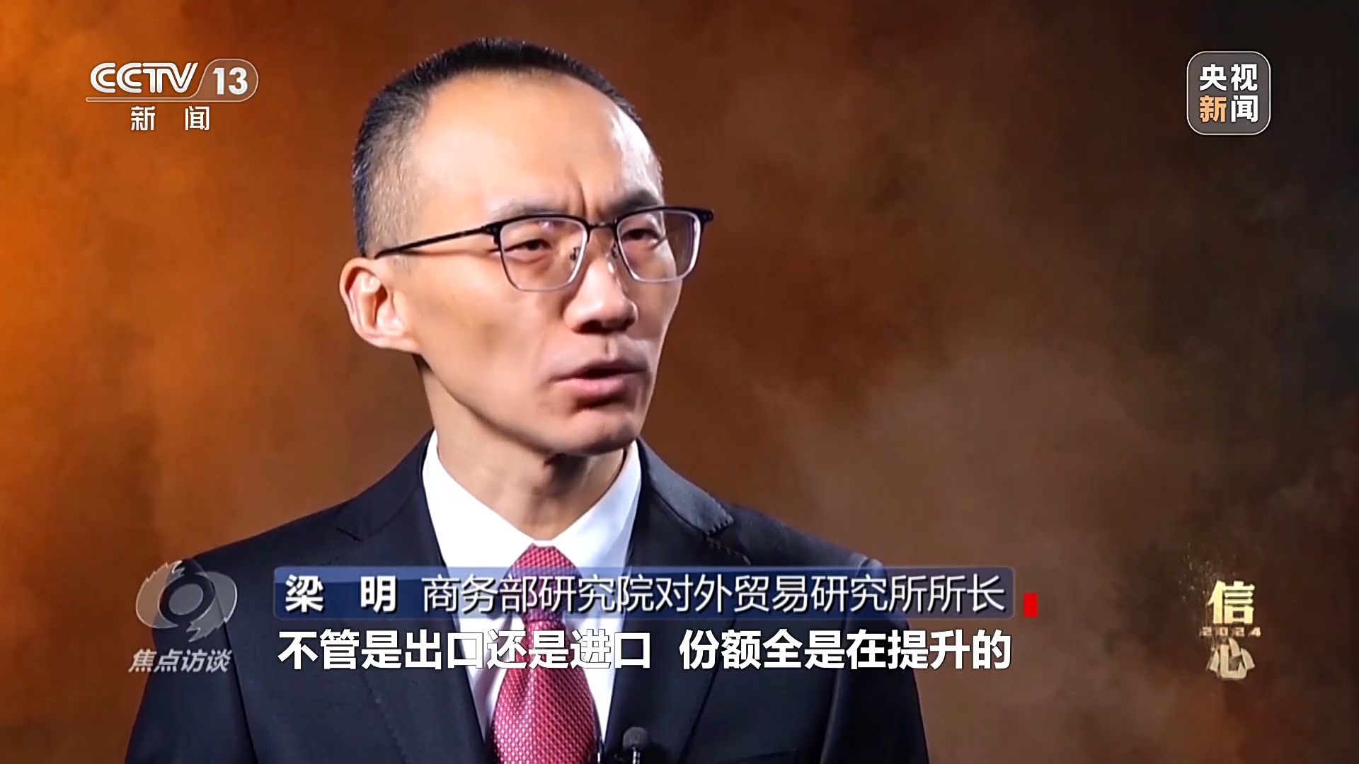商務部研究院對外貿易研究所所長 梁明:“今年前三月,中國出口同比增速4.7%。前11月,增速達到了6.7%,在逐漸回穩(wěn)向好。不管是出口還是進口,份額全是在提升的,顯示了中國貿易在全球中的地位進一步凸顯,貿易的質量,還有貿易的結構在逐步優(yōu)化?!?/p>