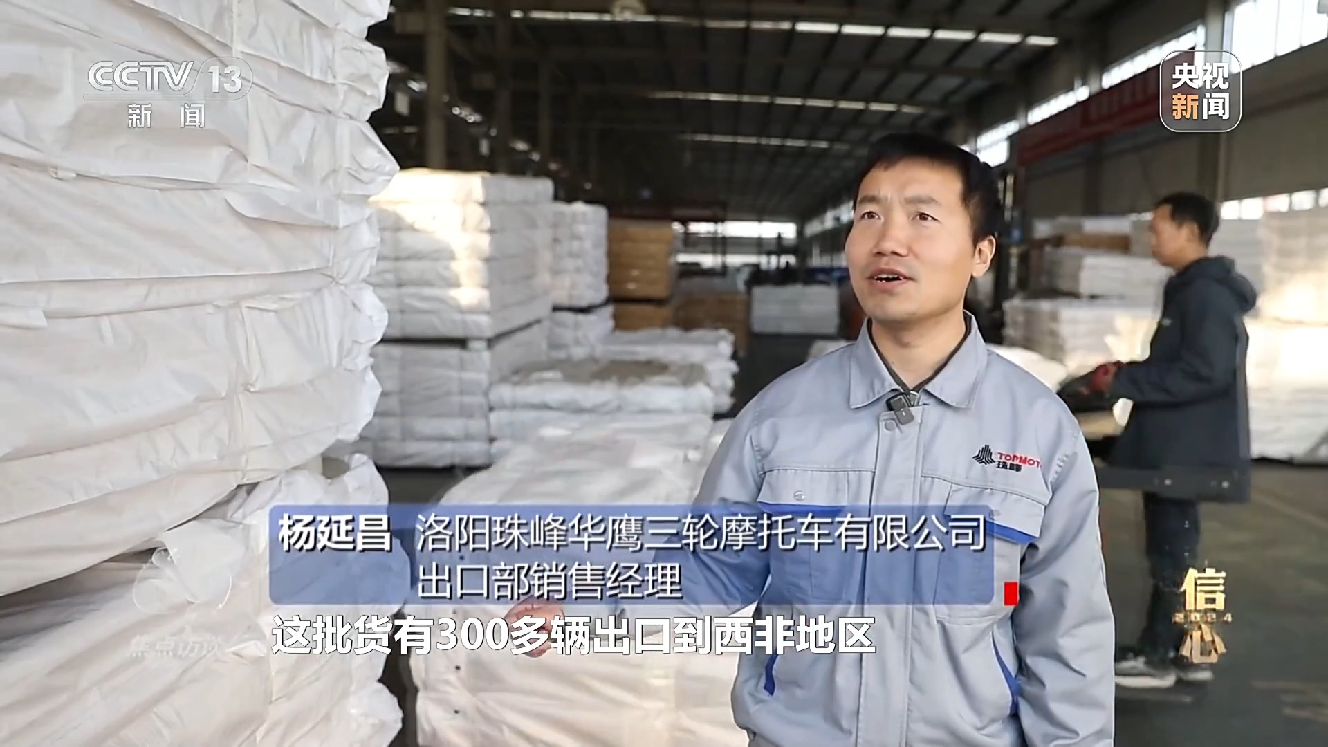 洛陽珠峰華鷹三輪摩托車有限公司出口部銷售經(jīng)理 楊延昌:“這批貨有300多輛出口到西非地區(qū),目前訂單量已經(jīng)達到了3萬臺,排到了25年3月份。”