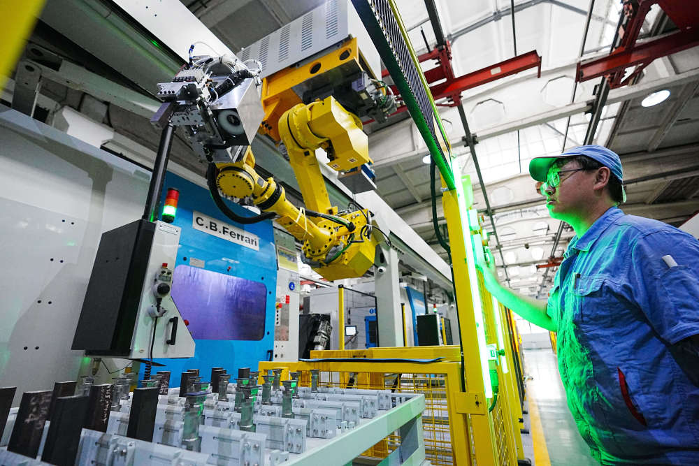 7月23日,在哈電集團(tuán)哈爾濱汽輪機(jī)廠有限責(zé)任公司葉片加工智能化車間,工作人員在觀察智能機(jī)械臂運(yùn)行情況。近年來,東北三省加大力度推進(jìn)傳統(tǒng)制造業(yè)數(shù)字化改造,依靠科技創(chuàng)新“第一動(dòng)力”,聚焦“卡脖子”領(lǐng)域,讓傳統(tǒng)產(chǎn)業(yè)增“智”提“質(zhì)”。(新華社記者 王建威 攝)
