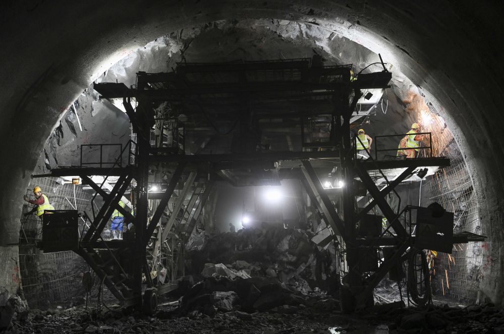 工人在新疆天山勝利隧道內(nèi)施工(12月25日攝)。新華社記者 胡虎虎 攝