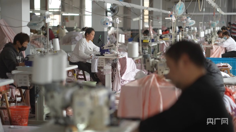 家紡企業(yè)車(chē)間里,工人在生產(chǎn)線上忙碌(央廣網(wǎng)記者 楊夢(mèng)奎 攝)