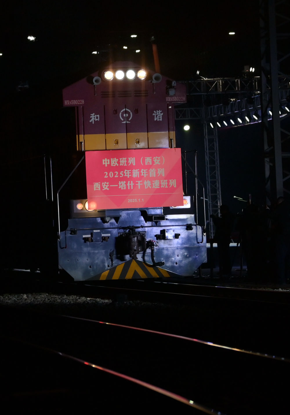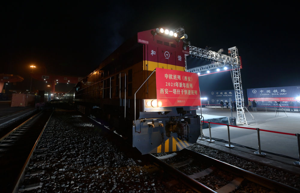 2025年1月1日0時,伴隨著汽笛長鳴,滿載著白色家電、紡織品和化工品等貨物共計50個集裝箱的中歐班列(西安)駛出西安國際港站,一路向西駛往烏茲別克斯坦首都塔什干。