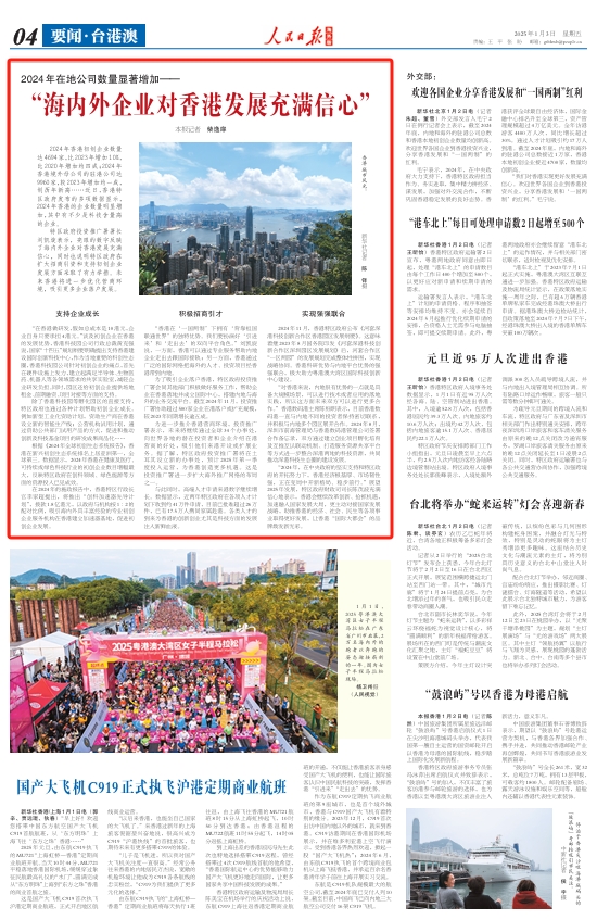 “2024年,在中央政府的堅(jiān)實(shí)支持和特區(qū)政府的開拓努力下,香港經(jīng)濟(jì)根基厚、市場(chǎng)韌性強(qiáng),正在變局中開新格局、穩(wěn)步前行。”展望2025年發(fā)展,特區(qū)政府財(cái)政司司長(zhǎng)陳茂波充滿信心地表示,香港會(huì)繼續(xù)改革創(chuàng)新、搶抓機(jī)遇,加速融入國(guó)家發(fā)展大局,更主動(dòng)對(duì)接國(guó)家發(fā)展戰(zhàn)略,助推香港的經(jīng)濟(jì)、社會(huì)、民生等各項(xiàng)事業(yè)取得更好發(fā)展,讓香港“國(guó)際大都會(huì)”的品牌煥發(fā)新光彩。