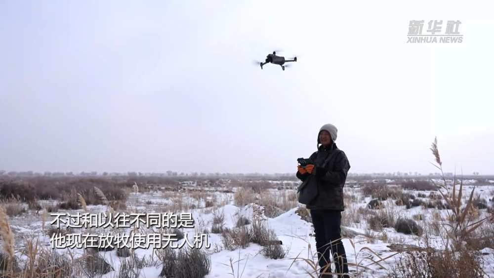 在新疆巴音郭楞蒙古自治州博湖縣,牧民道爾加拉每天都要把駱駝趕到戈壁灘上放牧,不過(guò)和以往不同的是,他現(xiàn)在放牧使用無(wú)人機(jī)。