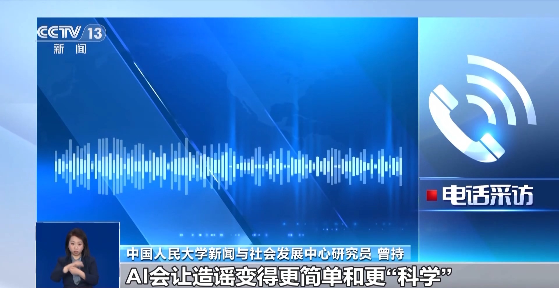 中國(guó)人民大學(xué)新聞與社會(huì)發(fā)展中心研究員 曾持:在現(xiàn)在的技術(shù)情況下,平臺(tái)只能事后懲罰。但是現(xiàn)代社會(huì)的傳播速度又太快了,造成的影響太迅速,所以很難在源頭上根治AI造謠的影響。我覺(jué)得將來(lái)監(jiān)管要從兩個(gè)方向努力: