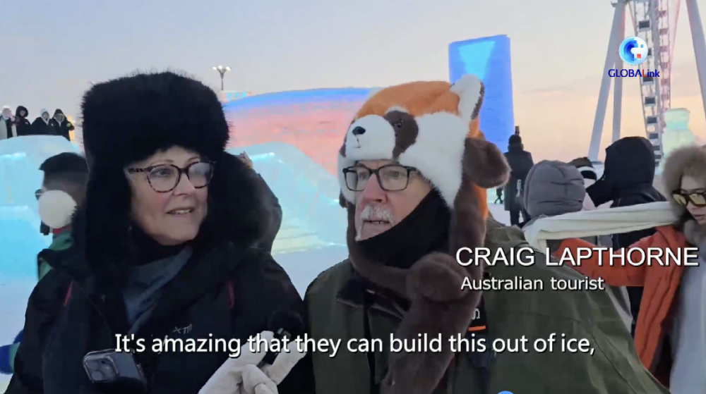 一旁的克雷格·拉普索恩頭戴俏皮卡通棉帽,同樣十分感慨。他驚嘆于能工巧匠們用冰雪構(gòu)筑如此繁多的美麗景觀,不可思議之感溢于言表。他還留意到哈爾濱冰雪大世界為成人與兒童精心配備冰上自行車等娛樂設(shè)施,深感此地適宜全家出游,讓每一位家庭成員都能投身冰雪運動,暢享冰雪王國的歡樂氛圍。