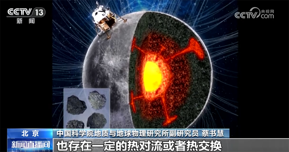 蔡書慧稱:“發(fā)現(xiàn)距今20億年的時(shí)候,也就是月球演化的偏中后期,它還存在一個(gè)非常弱的磁場,強(qiáng)度是2—4個(gè)微特,不到現(xiàn)今地球磁場的10%。這說明在距今20億年的時(shí)候,月球的內(nèi)部可能還是有一定的活力的,也存在一定的熱對流或者熱交換?!?/p>