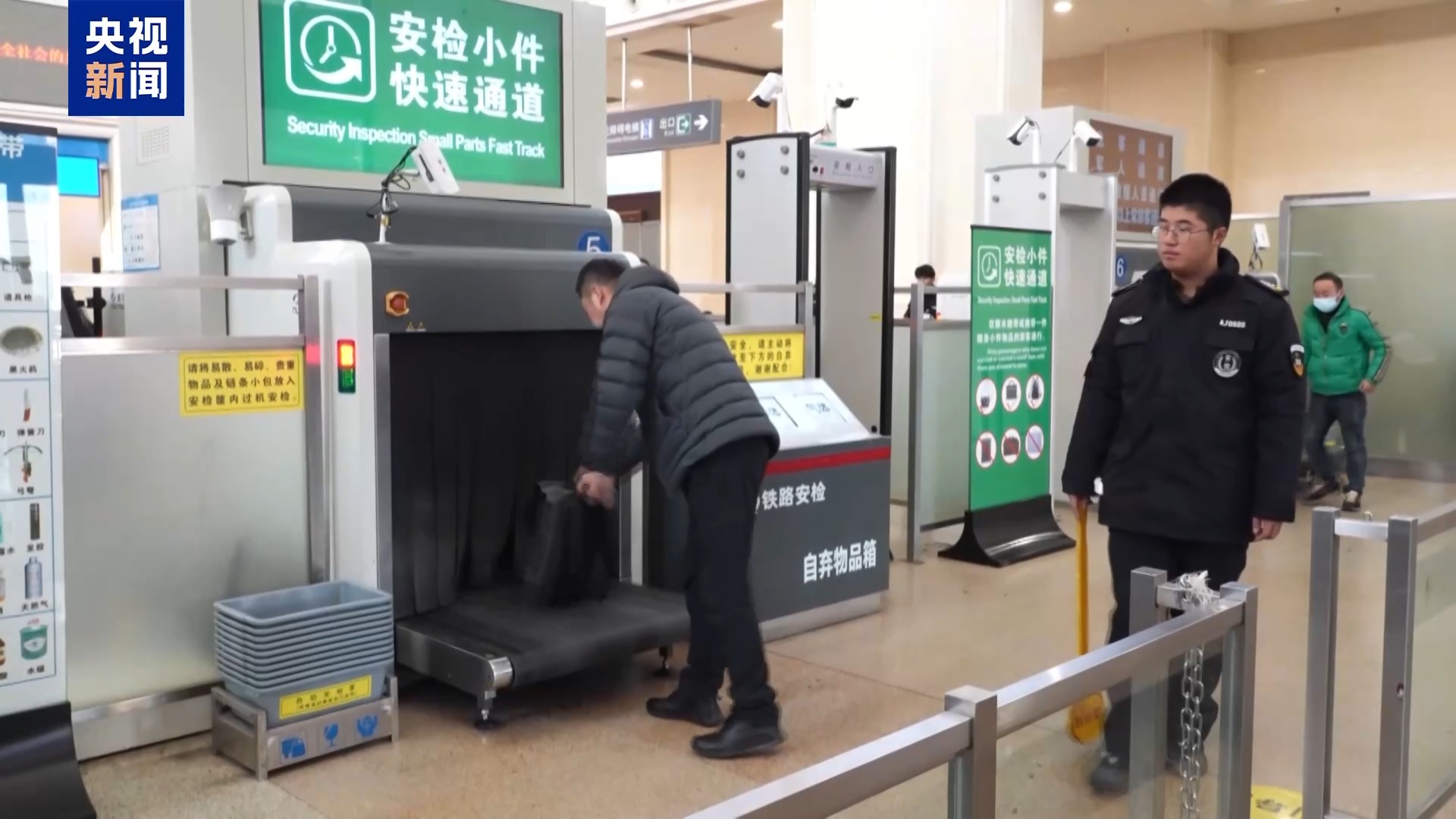 在安檢通道附近,今年還新加裝了“限帶品”便民寄件箱。如果旅客不留神攜帶了無法帶上車的物品,可以現(xiàn)場直接快遞回家。