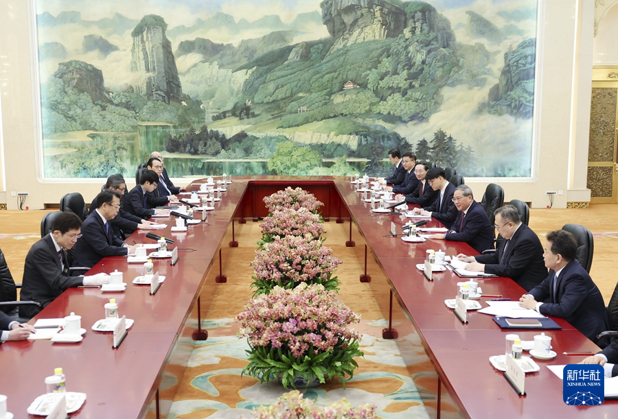 1月15日,中共中央政治局常委、國務(wù)院總理李強(qiáng)在北京人民大會(huì)堂會(huì)見由日本自民黨干事長森山裕、公明黨干事長西田實(shí)仁率領(lǐng)的日本執(zhí)政黨代表團(tuán)。新華社記者 丁海濤 攝