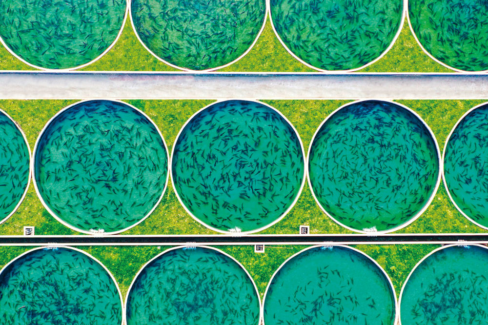 天全水產(chǎn)現(xiàn)代農(nóng)業(yè)園,上百個依河而建的圓形流水魚池中,鱘魚正在游曳。圖片由天全縣委宣傳部提供。