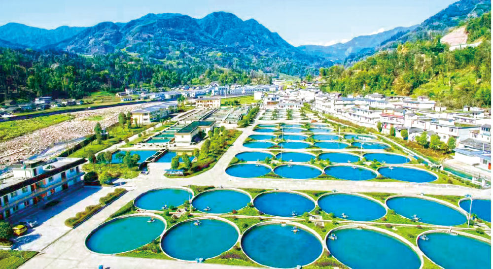 在四川省天全水產(chǎn)現(xiàn)代農(nóng)業(yè)園內(nèi),上百個圓形流水魚池依河而建。圖片由天全縣委宣傳部提供。