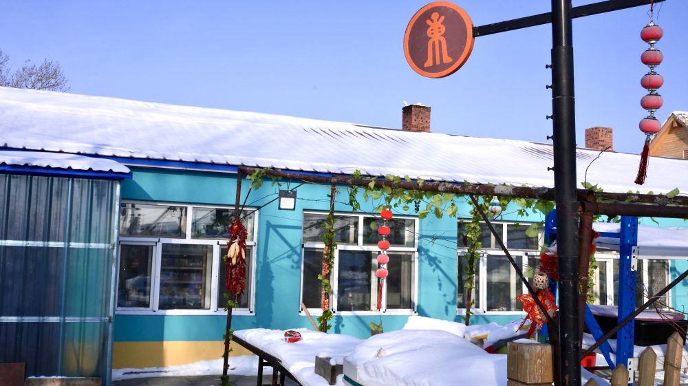 1月13日,正在營業(yè)的黑瞎子島鎮(zhèn)南崗村的漁家樂飯店。新華社記者 徐凱鑫 攝