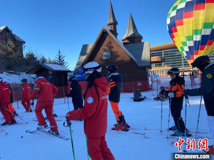 正值2024至2025雪季期間,當(dāng)日下午,一行人來到富龍滑雪場體驗(yàn)滑雪??紤]多數(shù)人是“首滑”,當(dāng)?shù)匕才帕藢I(yè)教練教授雙板滑雪入門知識(shí)。