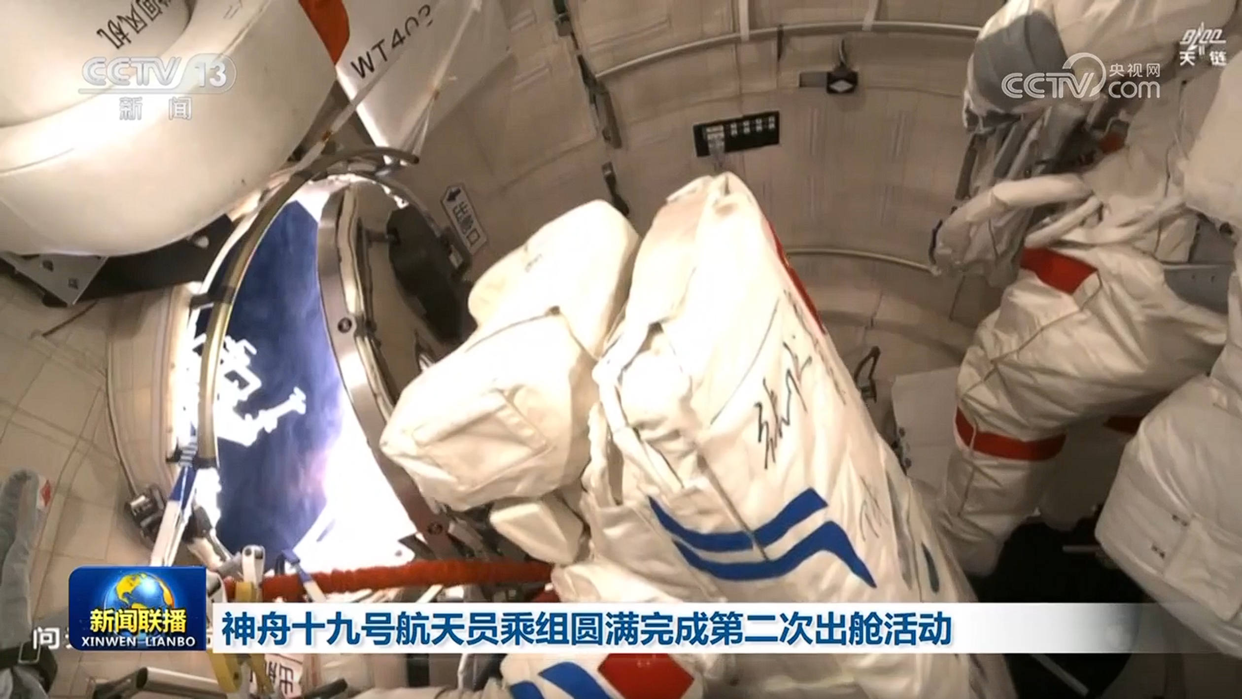 1月21日1時12分,經(jīng)過約8.5小時的出艙活動,神舟十九號乘組航天員蔡旭哲、宋令東、王浩澤密切協(xié)同,圓滿完成第二次出艙活動。