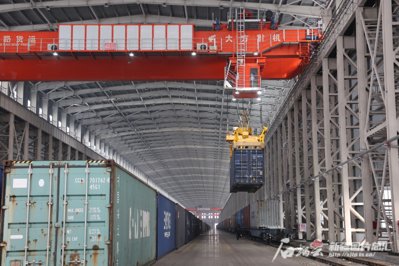 為有效解決這個問題,2008年,阿拉山口建成了第一座鐵路室內(nèi)集裝箱換裝庫——“換二十三庫”。自此,實現(xiàn)了一年365天、每天24小時不間斷的換裝作業(yè),年換裝能力達20萬個標箱。