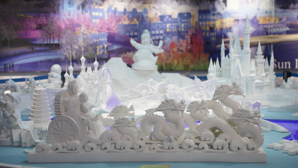 在冰雕雪塑的世界里,一座座以中式建筑為藍本的冰建筑巍峨聳立,哈爾濱不斷向世界展示多姿多彩的國風(fēng)元素。匠人們憑借精湛技藝,以冰雪為筆,緩緩鋪陳開一幅幅中國歷史文化的壯麗畫卷。