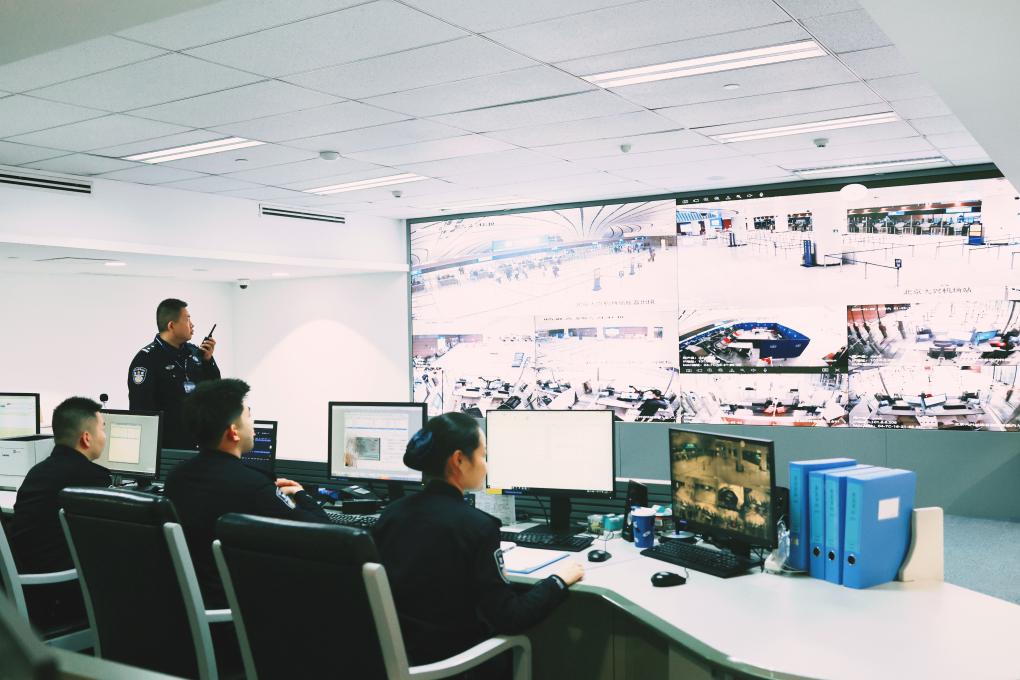 指揮中心的大屏上,機(jī)場(chǎng)每個(gè)角落的現(xiàn)場(chǎng)視頻一目了然?!拔覀儠?huì)根據(jù)大屏觀察出入境現(xiàn)場(chǎng)人流量,及時(shí)優(yōu)化調(diào)配警力;適時(shí)介入各類案事件、協(xié)調(diào)聯(lián)絡(luò)機(jī)場(chǎng)相關(guān)部門給予協(xié)助,確保口岸始終處于平穩(wěn)、順暢的狀態(tài)。”大興機(jī)場(chǎng)邊檢站邊檢處處長(zhǎng)李欣說(shuō)。