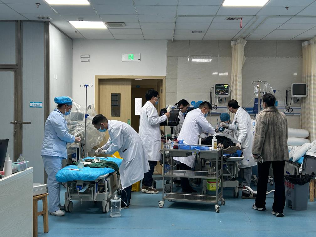 醫(yī)護人員正在搶救病人。新華社記者劉禎 攝