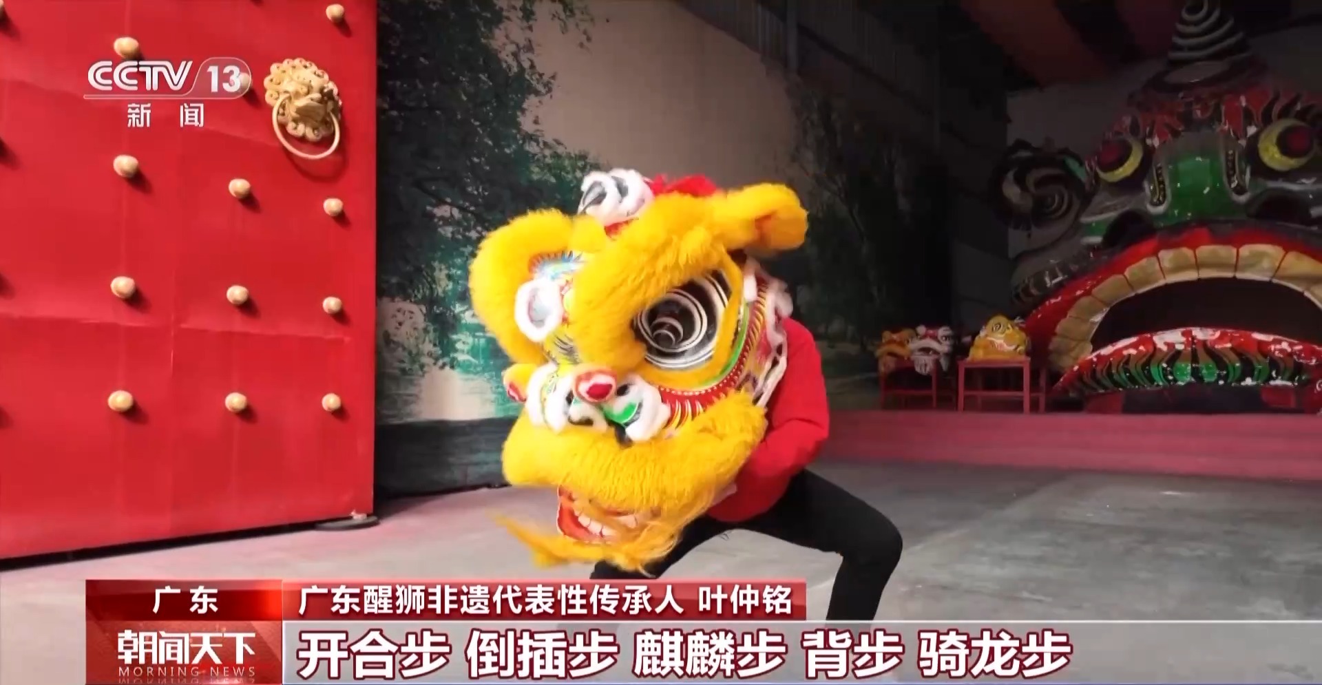 廣東醒獅非遺代表性傳承人 葉仲銘:南獅的步行步法全部是來(lái)源于武術(shù)的步行步法。開(kāi)合步、倒插步、麒麟步、背步、騎龍步、虛步、吊馬、金雞獨(dú)立步等等,都會(huì)出現(xiàn)在舞獅當(dāng)中。梅花樁也是一種舞獅當(dāng)中的陣法,當(dāng)中有河流有山,其實(shí)是給人一種啟發(fā),要勇往直前,勇于承擔(dān)責(zé)任,繼續(xù)為美好明天出發(fā)。