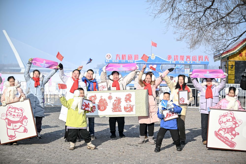 啦啦操、快閃合唱、街頭器樂演奏、國(guó)標(biāo)舞、冰雕制作……沿途,豐富多彩的群眾活動(dòng)營(yíng)造出滿滿氛圍感。在五星紅旗的掩映下,濱洲鐵路橋煥然一新,高校大學(xué)生置身大型亞冬會(huì)主題畫框,合唱《我和我的祖國(guó)》,留下精彩一瞬。