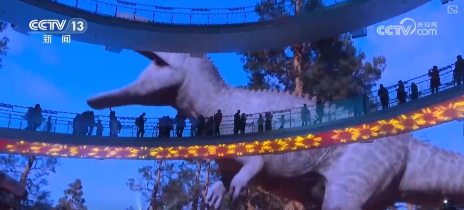 春節(jié)期間循環(huán)播放的恐龍科學藝術展、春節(jié)主題展、春節(jié)檔電影精編等“四屏聯動”原創(chuàng)視頻,將光影資源與科教文化有機融合。特別是恐龍科學藝術展深受小朋友喜愛。展覽現場,巨幅卷軸屏以直觀的方式展現恐龍的樣貌與龐大體型,邀請觀眾與這些史前巨獸“比高”。環(huán)屏則將播放引人入勝的動畫視頻,生動再現侏羅紀中期恐龍的生活場景,讓觀眾仿佛可以跟隨恐龍的步伐,重返遠古世界。