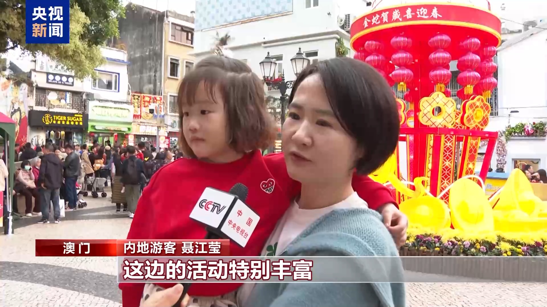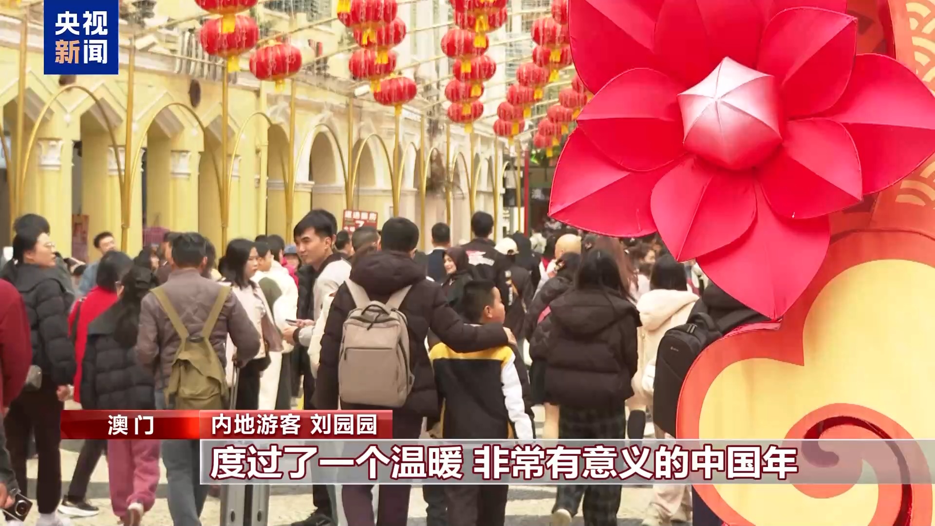 內(nèi)地游客 劉園園:這是我們第一次來到澳門,感受到了非常濃厚的節(jié)日氛圍,度過了一個溫暖、非常有意義的中國年,也希望祖國繁榮昌盛,人民幸福安康。