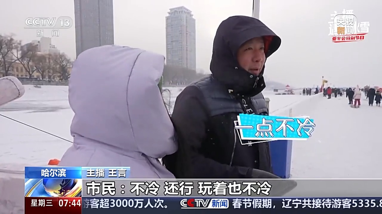 主播 王言:天色漸晚,但是我們看松花江上活力不減,今天其實(shí)因?yàn)楹眮?lái)襲還挺冷的,但是我采訪一天聽(tīng)到最多的詞就是不冷,開(kāi)心!哈爾濱有一個(gè)名字叫冰城,在我看來(lái)這個(gè)冰城的冰就是活力的冰,不管你來(lái)自哪兒,只要踏上這里的冰,就能夠感受到滿滿的活力,不管是來(lái)這兒玩冰賞雪的人,還是在這里工作的工作人員,大家都能夠感受到冰天雪地帶來(lái)的勃勃生機(jī)。