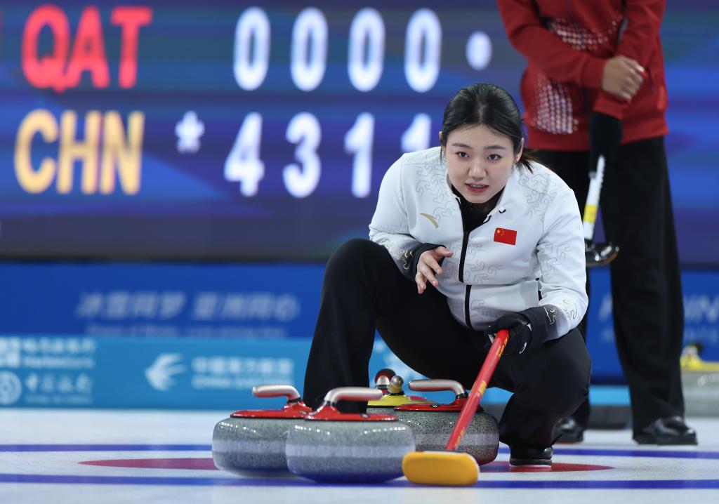 哈爾濱亞冬會冰壺混雙循環(huán)賽6日完成全部比賽,中國隊(duì)先以6:4戰(zhàn)勝韓國隊(duì),又以10:1輕取卡塔爾隊(duì),晉級半決賽。