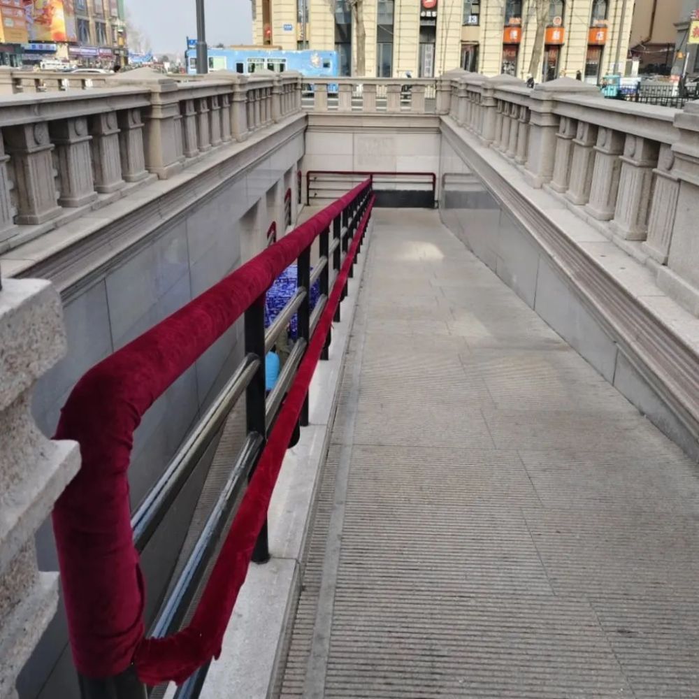 扶手也裹上了“紅色絨衣”