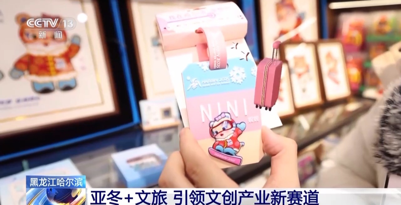 總臺記者 張程:我發(fā)現(xiàn)第九屆亞冬會的文創(chuàng)產(chǎn)品有兩個特點,第一就是完美地嵌入到我們的生活當中:比如說我現(xiàn)在頭上戴的這頂妮妮圖案的帽子,采用了石墨烯加熱技術(shù),保證你在戶外也能夠抵御“爾濱”的嚴寒。