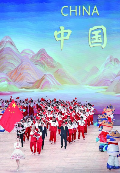 當(dāng)中國代表團(tuán)入場時,體育健兒揮手致意,現(xiàn)場觀眾起立鼓掌。在本屆亞冬會上,中國代表團(tuán)將參加全部項(xiàng)目的比賽,并朝著“取得我國亞冬會參賽史上最好成績”的目標(biāo)全力進(jìn)發(fā)。