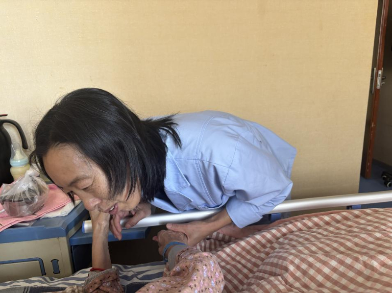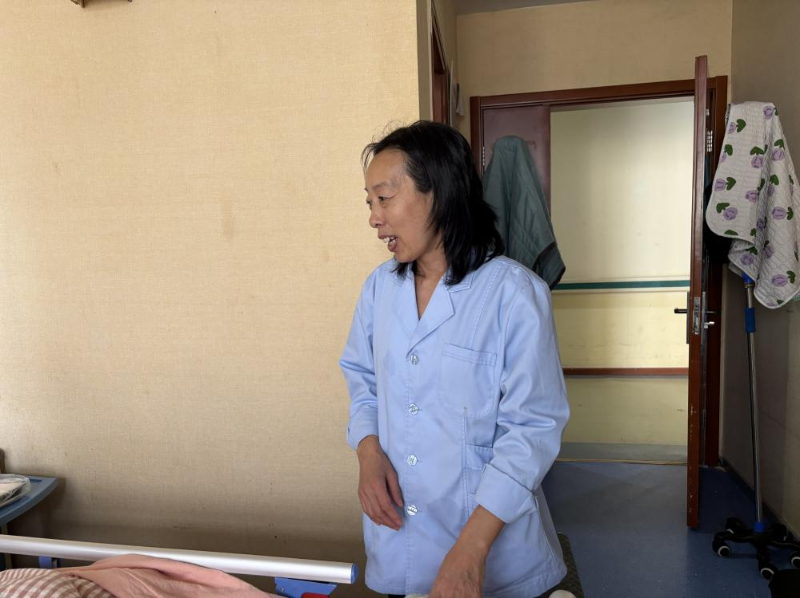 來自黑龍江省的李世娟,今年55歲,因?yàn)槟昙o(jì)原因本想從事育兒嫂工作的她只能從事護(hù)理工作?!凹艺菊f雇主更想要年輕些的阿姨帶孩子?!陛氜D(zhuǎn)之下,她考取了護(hù)工資格證,成為一名老年護(hù)理員?!斑@是我照顧的第二位老人”她輕聲說。第一位老人出院時(shí),家屬本想帶她走,她婉拒了,“看著他們好起來我也高興,但這里總有更需要我的人。”談話間,90床奶奶的兒子來探望老母親,輕摸著奶奶的頭一遍又一遍地問著“睜眼看看,我是誰呀”,奶奶也是含糊不清地說著“不知道”,兒子半開玩笑地說“傻老太太”。李世娟在一旁緊忙說:“你不要說她傻啊,糊涂啊,因?yàn)榛加邪柶澓DY的人有時(shí)是清醒的,一聽你說她傻她就覺得自己好像是傻了”,李世娟向記者說,自己平日很喜歡看健康教育節(jié)目,見到認(rèn)識的人也會多科普幾句,“我姑娘說,媽你別老給人家上課,我說媽那不是上課,只是想把自己知道的分享給人家”,李世娟一邊說,一邊難掩苦笑。