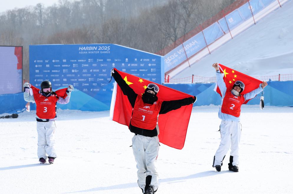 當(dāng)日中國代表團(tuán)的4金全部來自雪上項(xiàng)目。越野滑雪和滑雪登山雙雙收官,中國隊(duì)繼續(xù)出色發(fā)揮。斬獲越野滑雪男子4X7.5公里接力和女子4X5公里接力項(xiàng)目兩金后,中國隊(duì)拿下越野滑雪6枚金牌中的5枚,創(chuàng)造亞冬會(huì)該項(xiàng)目最好成績?;┑巧巾?xiàng)目中國隊(duì)更是獨(dú)步亞洲,包攬混合接力前三名,這個(gè)新增項(xiàng)目的三個(gè)小項(xiàng)共9枚獎(jiǎng)牌全部被中國隊(duì)收入囊中。