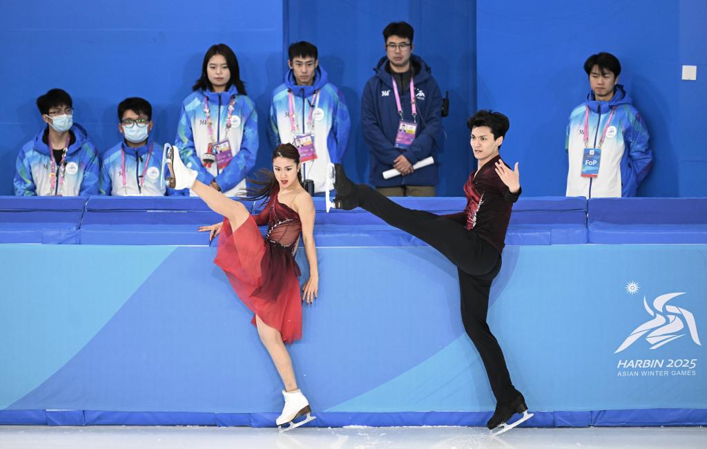 花樣滑冰當(dāng)日產(chǎn)生兩金。中國隊(duì)的任俊霏/邢珈寧雖然在自由舞比賽中排名第一,但難以彌補(bǔ)前一天韻律舞上的差距,他們最終以171.25分獲得冰上舞蹈銀牌,日本組合吉田唄菜/森田真沙也以173.31分奪冠。雙人滑金牌被烏茲別克斯坦選手葉卡捷琳娜·蓋尼什/德米特里·奇吉列夫奪得,朝鮮組合廉太鈺/韓錦澈獲得銀牌,這也是烏茲別克斯坦和朝鮮本屆亞冬會(huì)的首枚獎(jiǎng)牌。女子單人滑短節(jié)目比賽中,中國隊(duì)兩位選手安香怡和朱易都發(fā)揮出自己的水平,暫列五、六位。