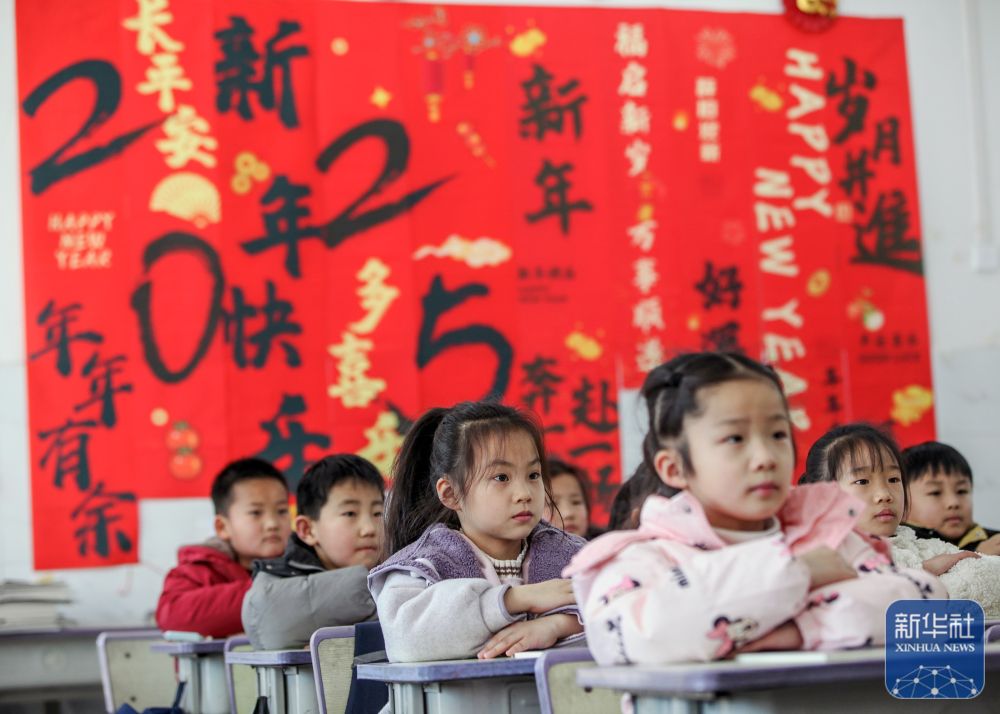 2月14日,在河南省焦作市博愛縣清化鎮(zhèn)街道七街小學(xué),學(xué)生在聽課。新華社發(fā)(程全攝)