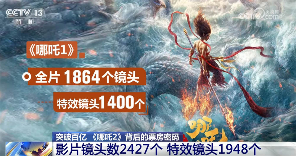 據(jù)電影主創(chuàng)團(tuán)隊(duì)提供的數(shù)據(jù):《哪吒1》,也就是《哪吒之魔童降世》全片1864個(gè)鏡頭,特效鏡頭1400個(gè);而《哪吒2》,鏡頭數(shù)達(dá)到2427個(gè),其中特效鏡頭1948個(gè)。影片中的每一個(gè)特效鏡頭、每一幀畫(huà)面都是138家動(dòng)畫(huà)公司、4000多名動(dòng)畫(huà)人的合力托舉。