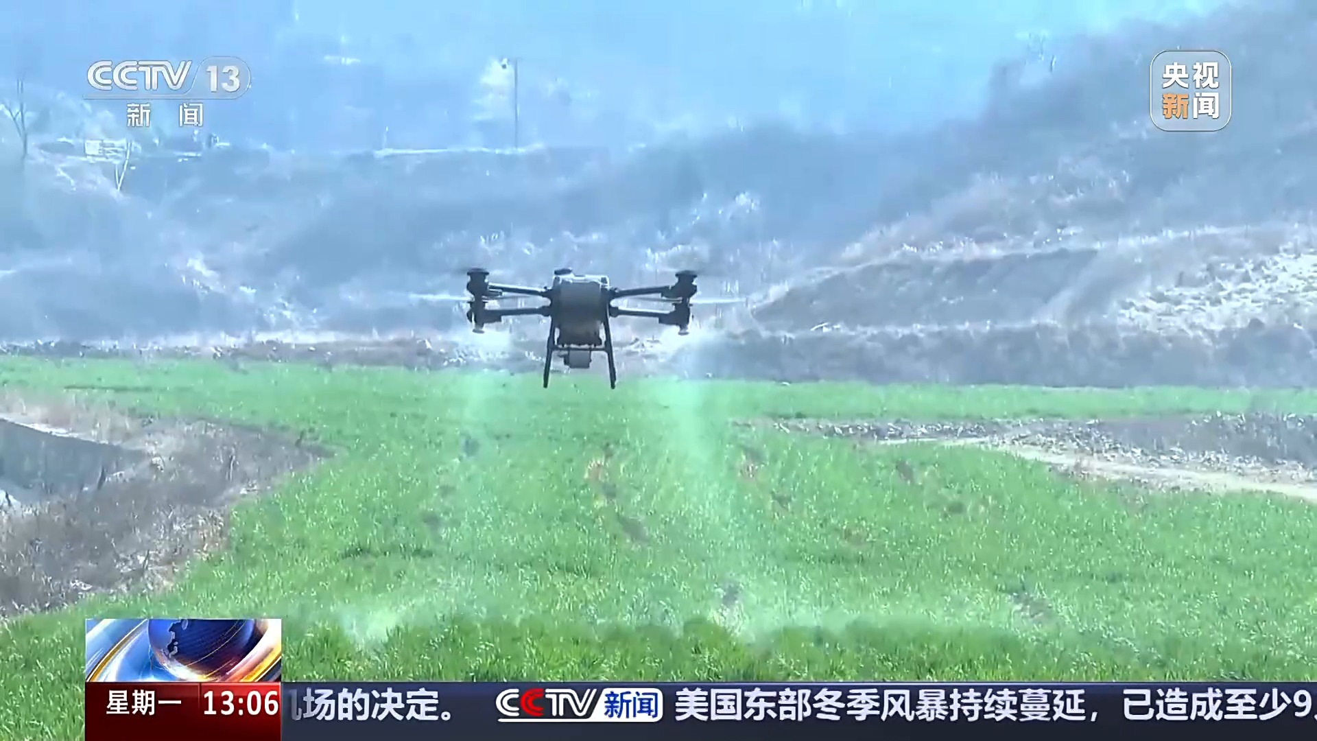 為保障春耕備耕工作的順利進(jìn)行,在小麥基地里,兩架滿載肥料的植保無人機(jī)正沿著設(shè)定航線精準(zhǔn)施肥,整個(gè)過程快捷高效。