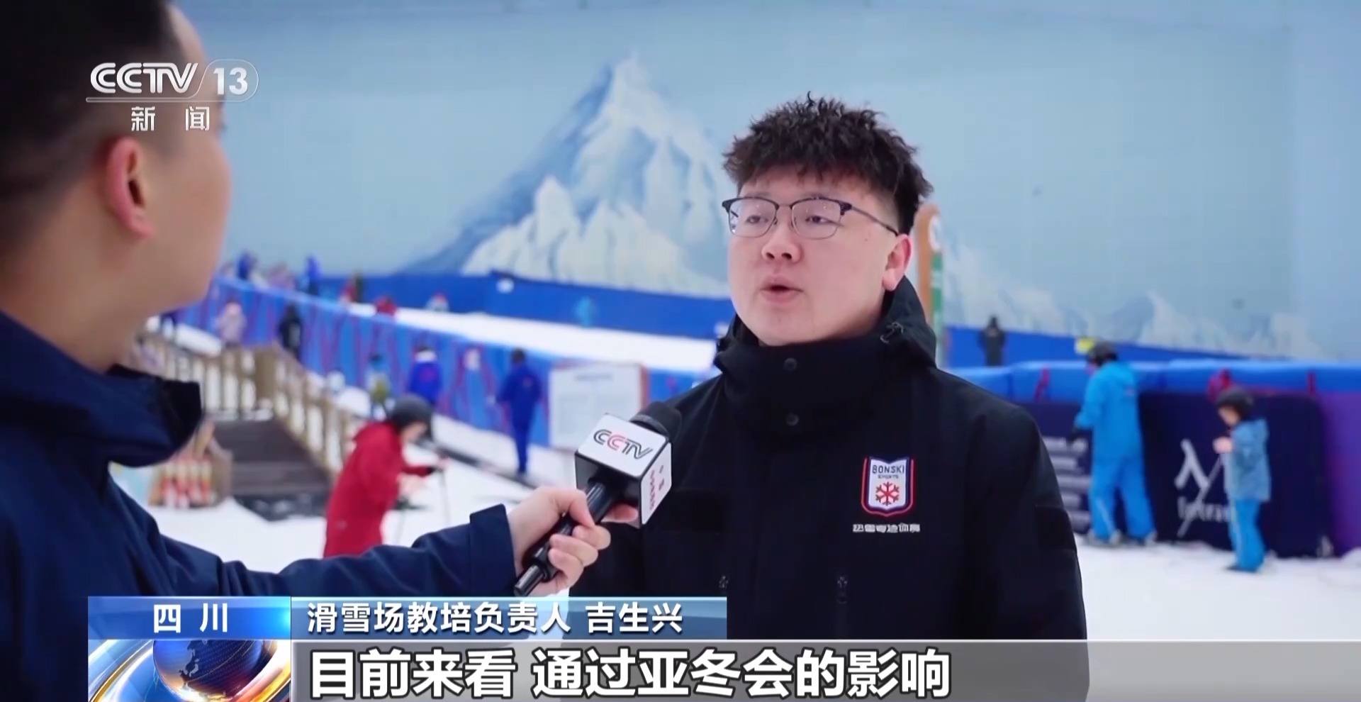 滑雪場(chǎng)教培負(fù)責(zé)人 吉生興:目前來(lái)看,通過(guò)亞冬會(huì)的影響,人數(shù)和客流從原來(lái)的每天一兩千人上漲到了現(xiàn)在四五千人。