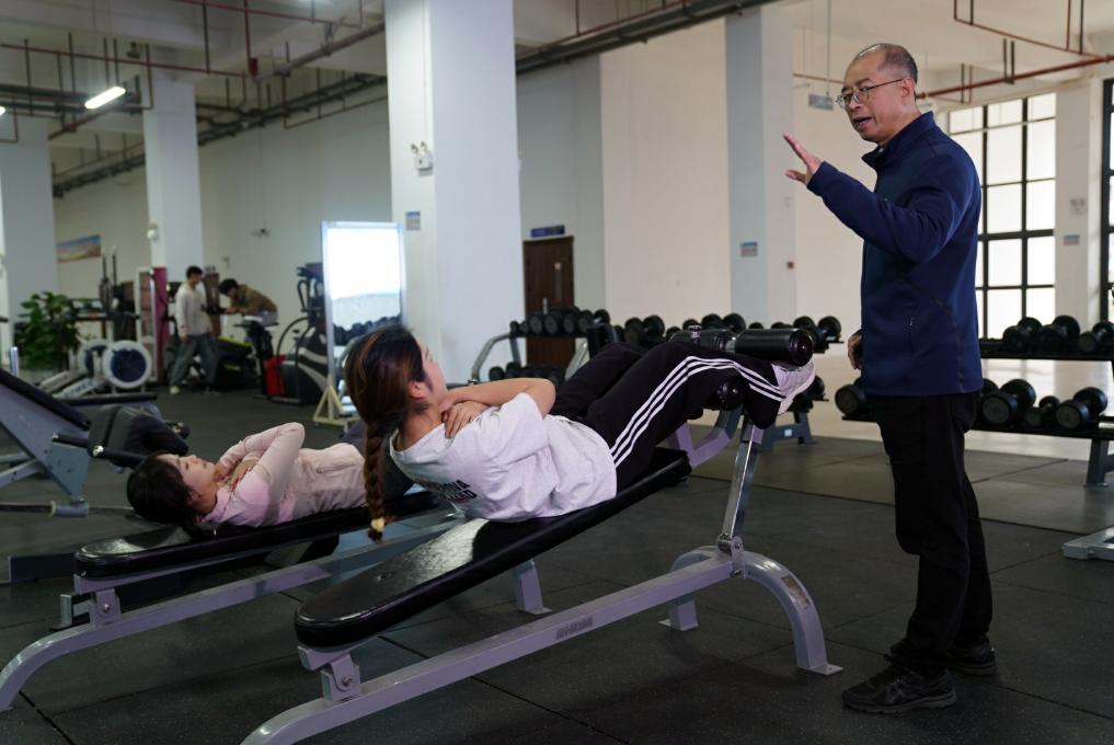 2月17日,在廣西體育高等??茖W校,韋軍在指導學生進行體育鍛煉。新華社記者 陳露緣 攝