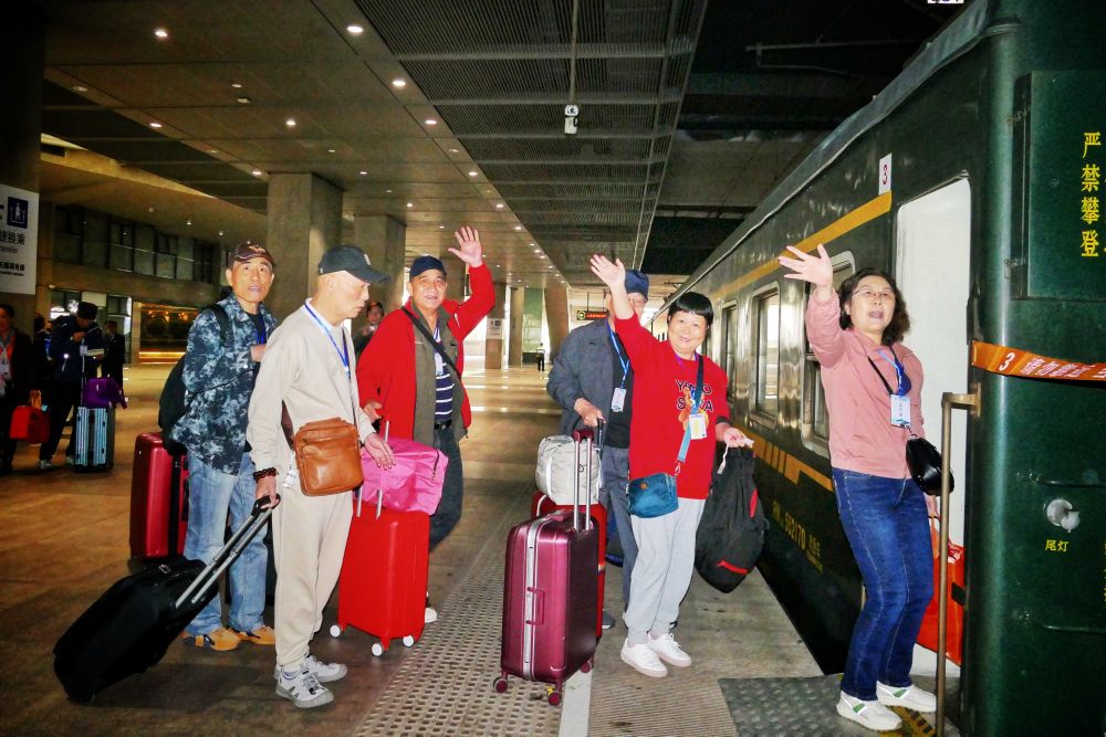 2024年4月20日,銀發(fā)旅客在上海南站乘坐專列旅游。新華社發(fā)(劉衛(wèi)興攝)