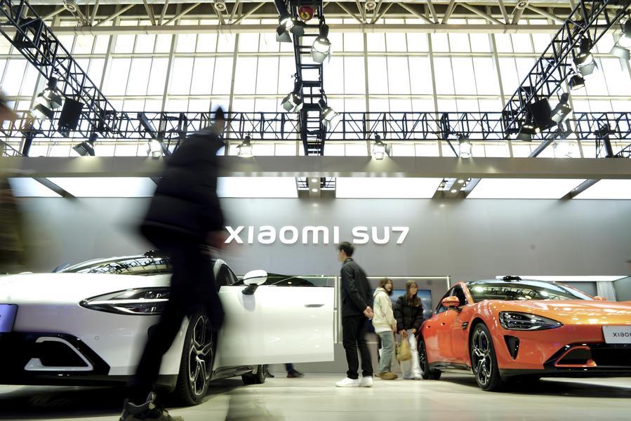 2024年11月28日,人們在第二屆中國國際供應鏈促進博覽會智能汽車鏈展區(qū)小米汽車展臺參觀。新華社發(fā)(那宇奇攝)
